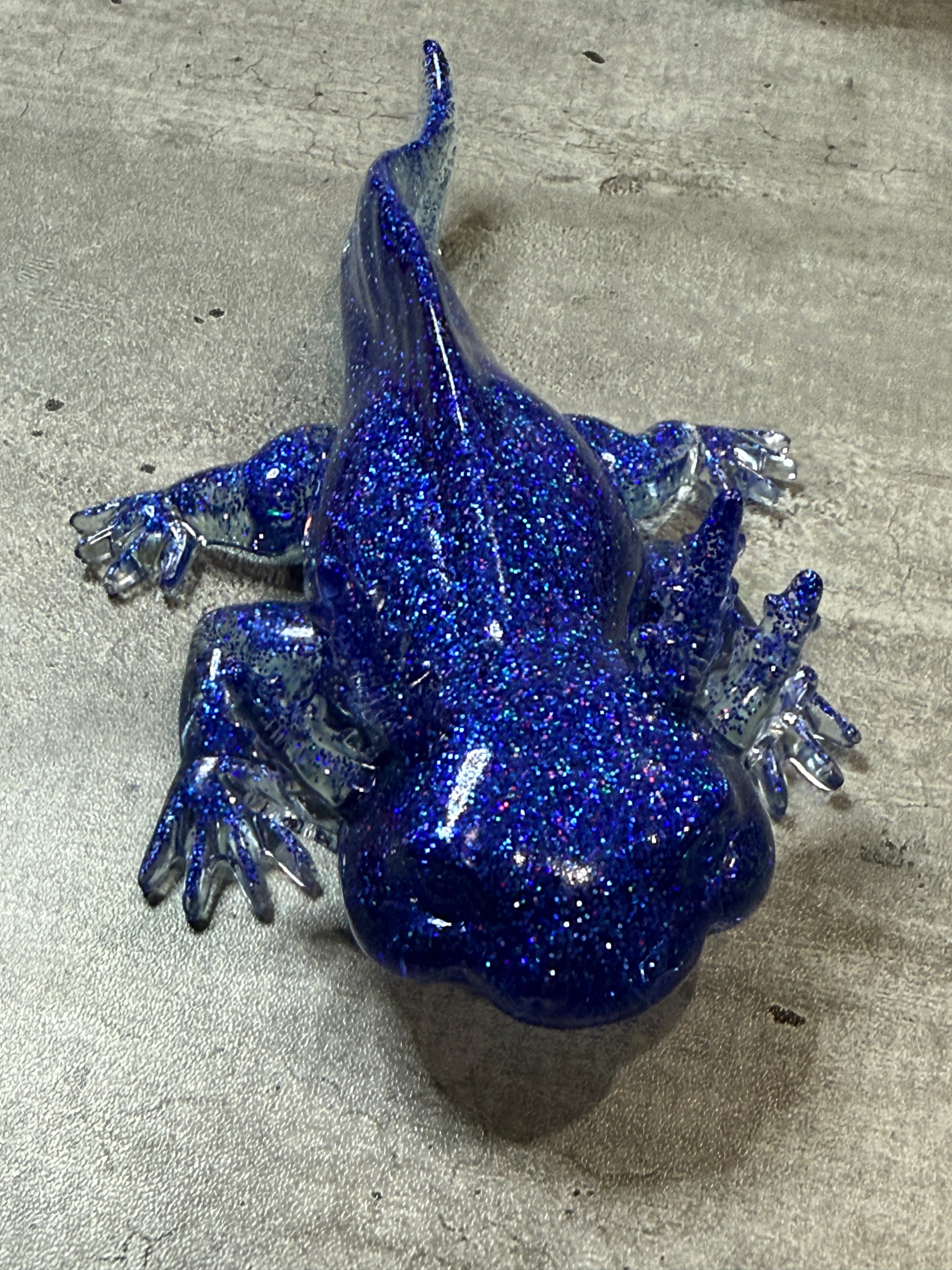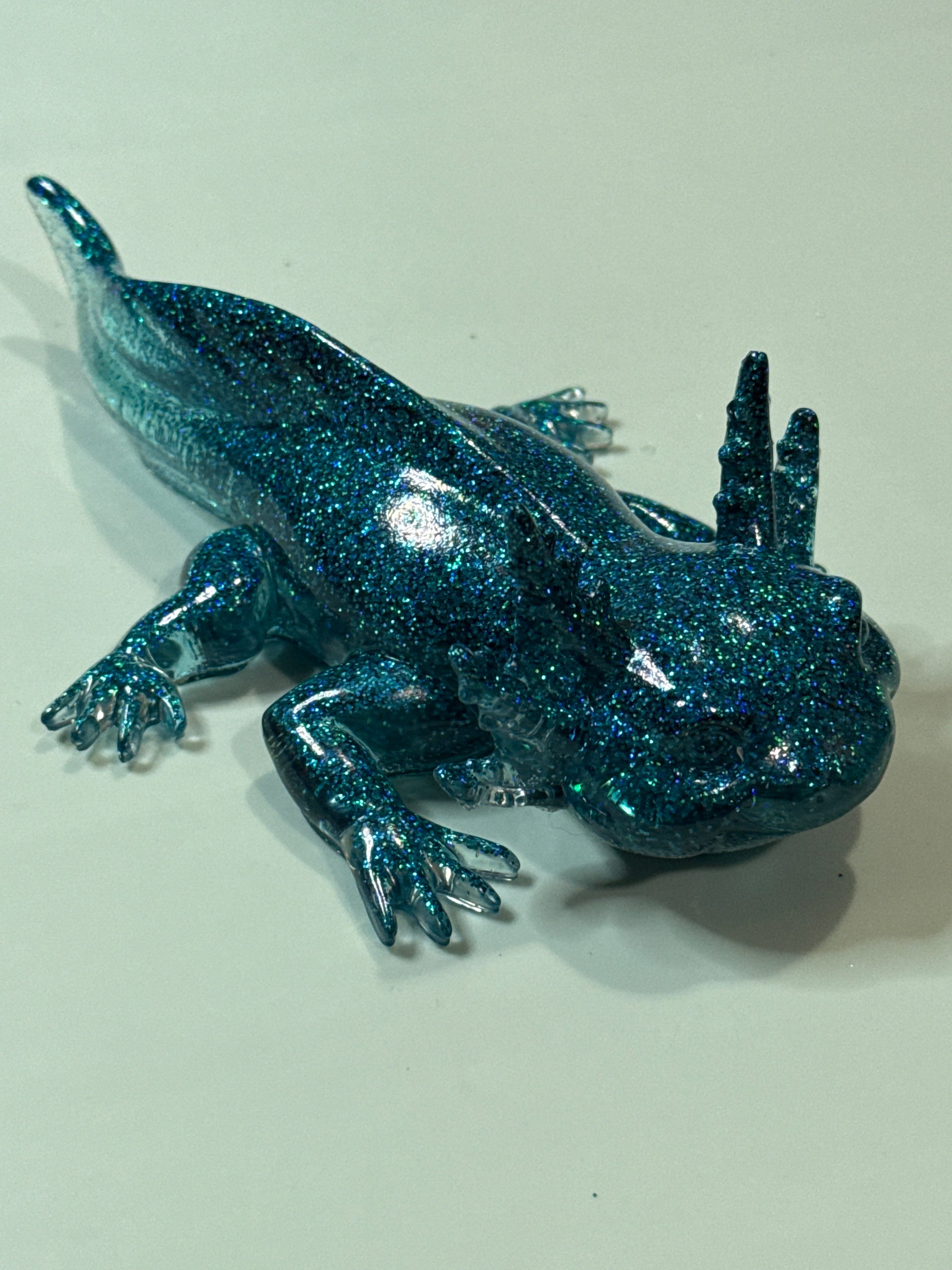 This Axolotl Figurine is expertly crafted from durable resin and features a glitter finish for a touch of sparkle. With its cute and whimsical design, this figurine is a must-have for any animal lover. Add a bit of magic to your decor with this adorable axolotl figurine.