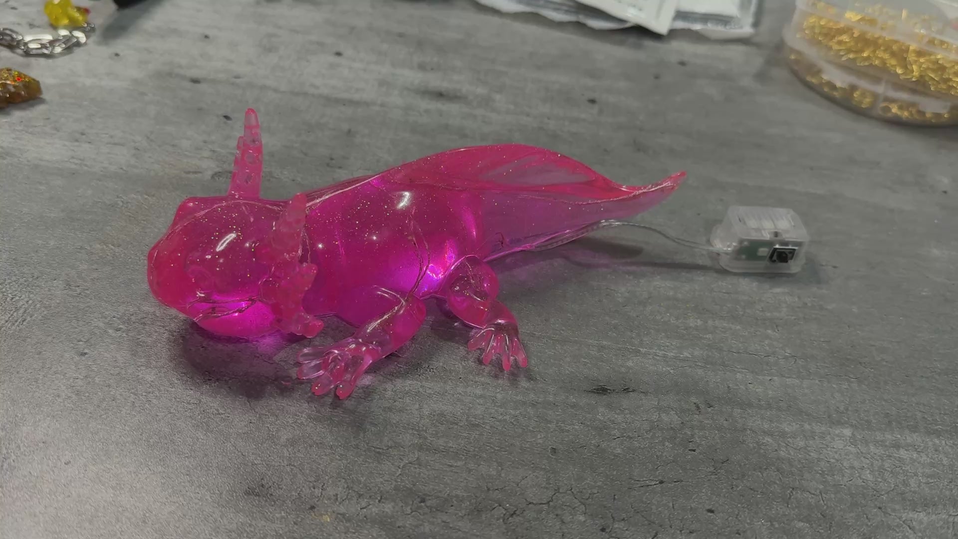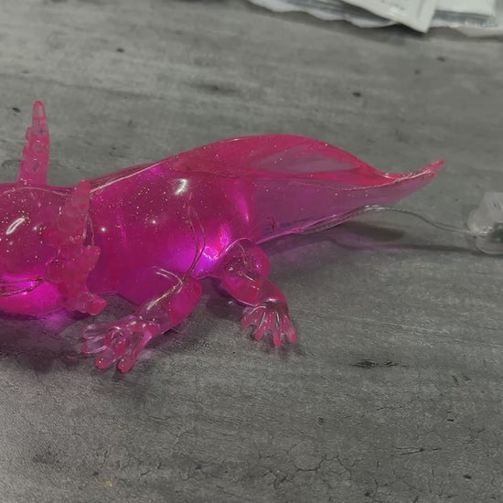 This Axolotl Figurine is expertly crafted from durable resin and features a glitter finish for a touch of sparkle. With its cute and whimsical design, this figurine is a must-have for any animal lover. Add a bit of magic to your decor with this adorable axolotl figurine.