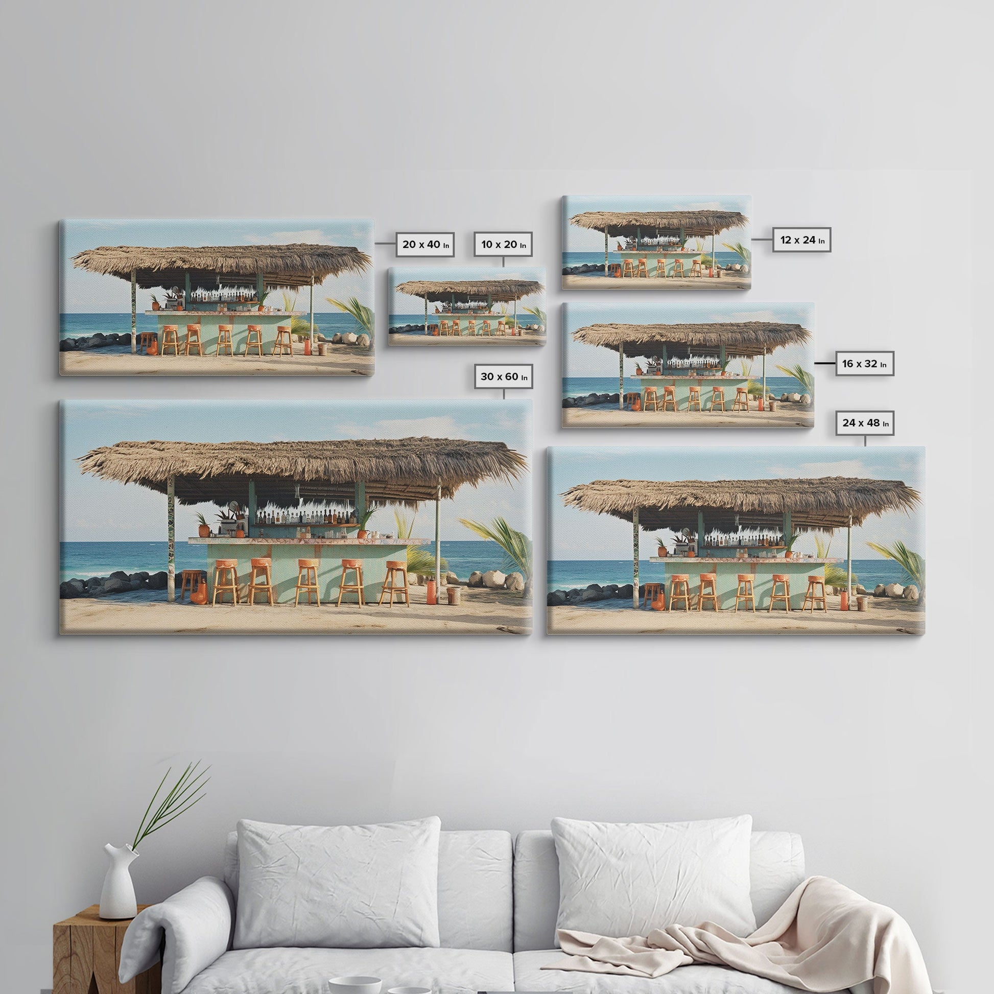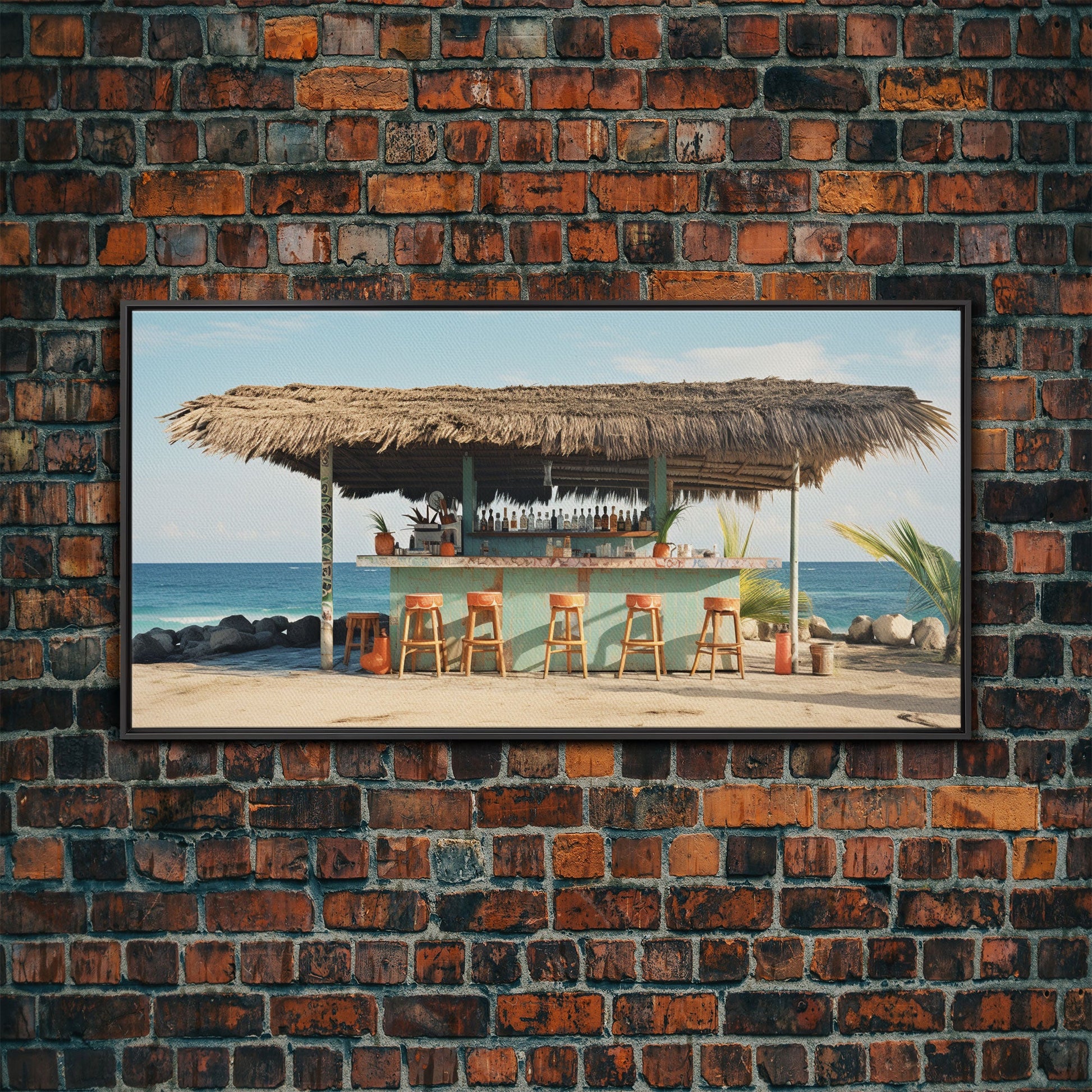 Beachside Tiki Hut Bar and Grill, Framed Canvas Print, Liminal Art, Framed Wall Decor Beach Photography, Surf Art, Surf Print Nautical Decor