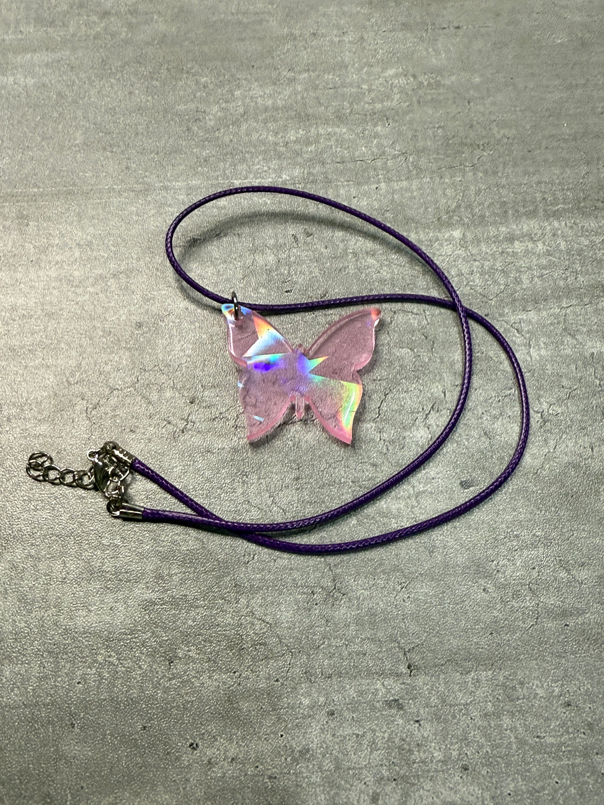 This butterfly pendant corded necklace is made with durable resin and a soft suede cord for comfortable wear. Its colorful design adds a touch of playfulness to any outfit. Perfect for adding a pop of color and whimsy to your everyday look.