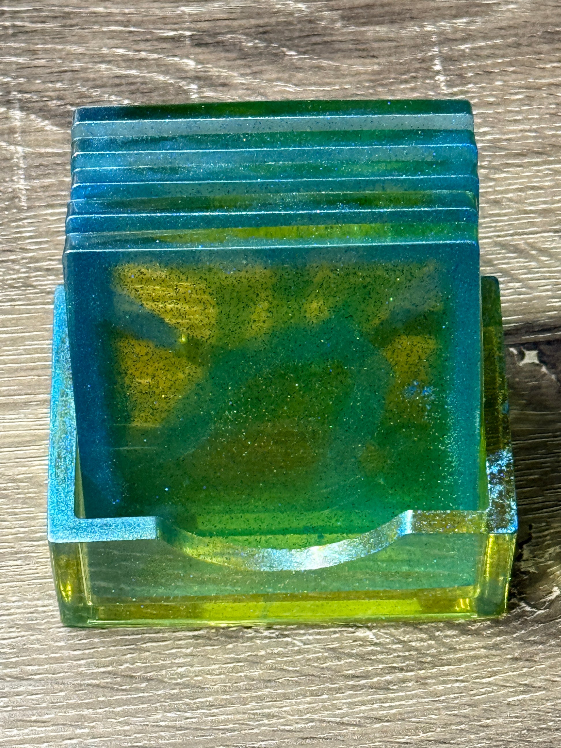 Upgrade your home decor with our 5-piece coaster set, expertly crafted from durable resin in an abstract design. Protect your furniture from scratches while adding a touch of elegance to your table. Functional and stylish, this set is perfect for entertaining.