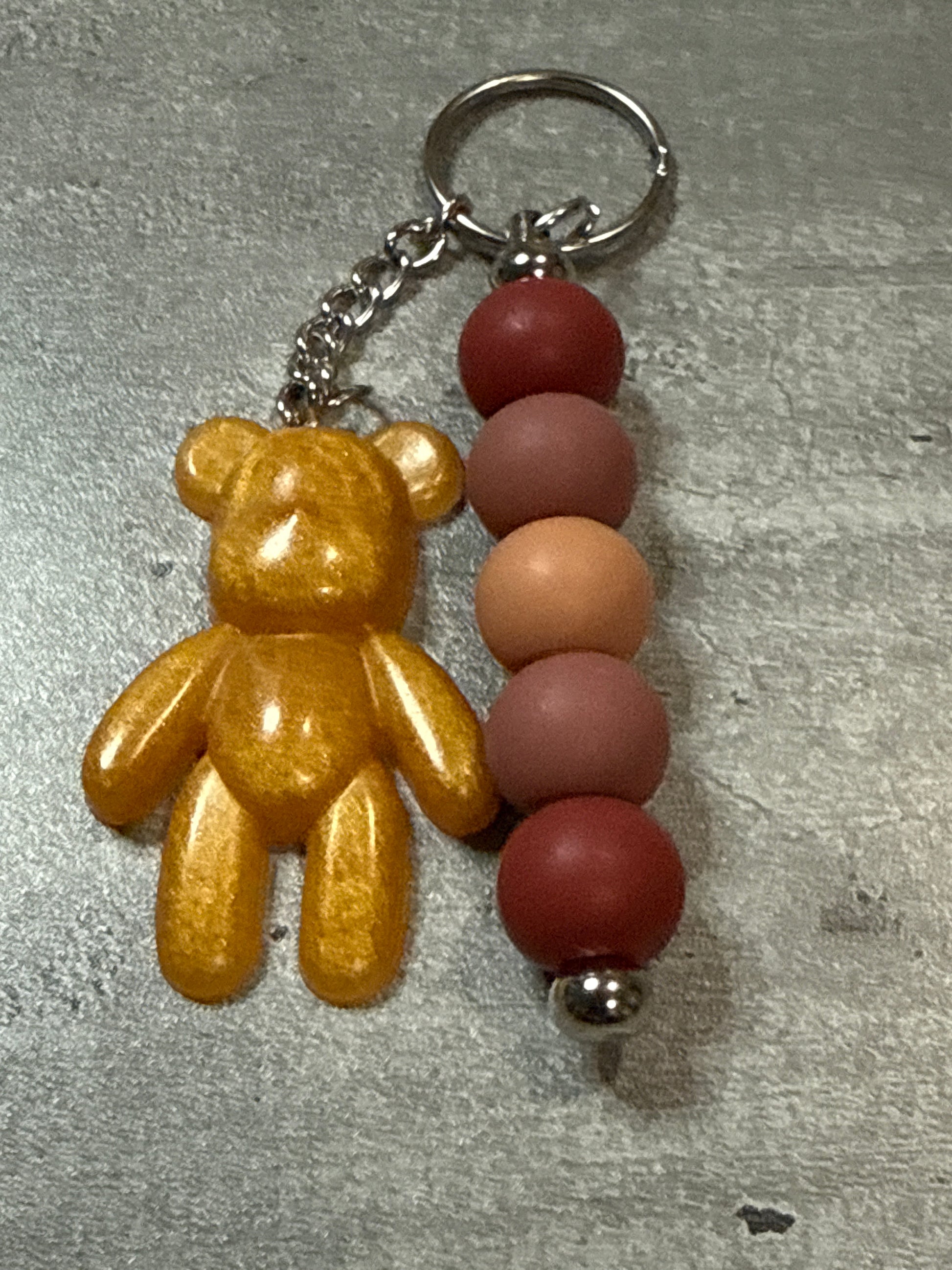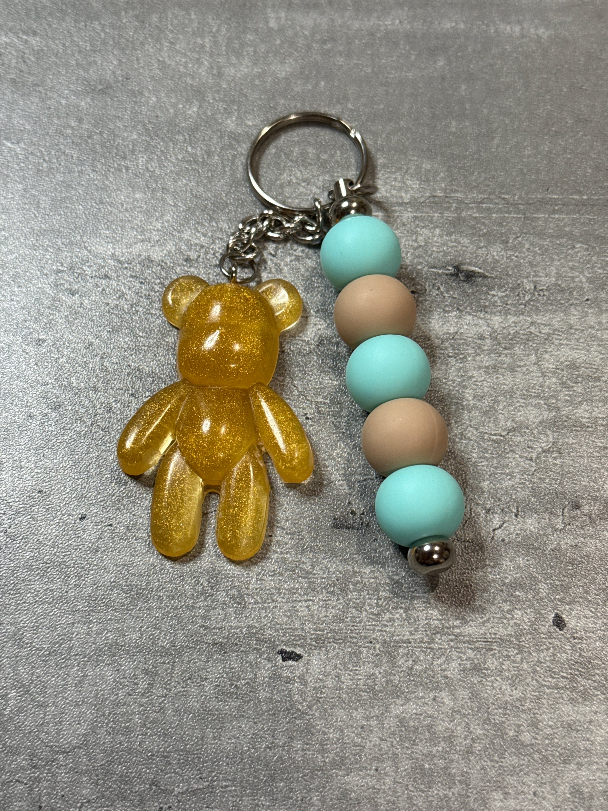 This versatile accessory features silicone beads and a glittery bear charm. Easily use it as a keychain for a touch of style. The durable materials make it a long-lasting and stylish addition to any outfit.