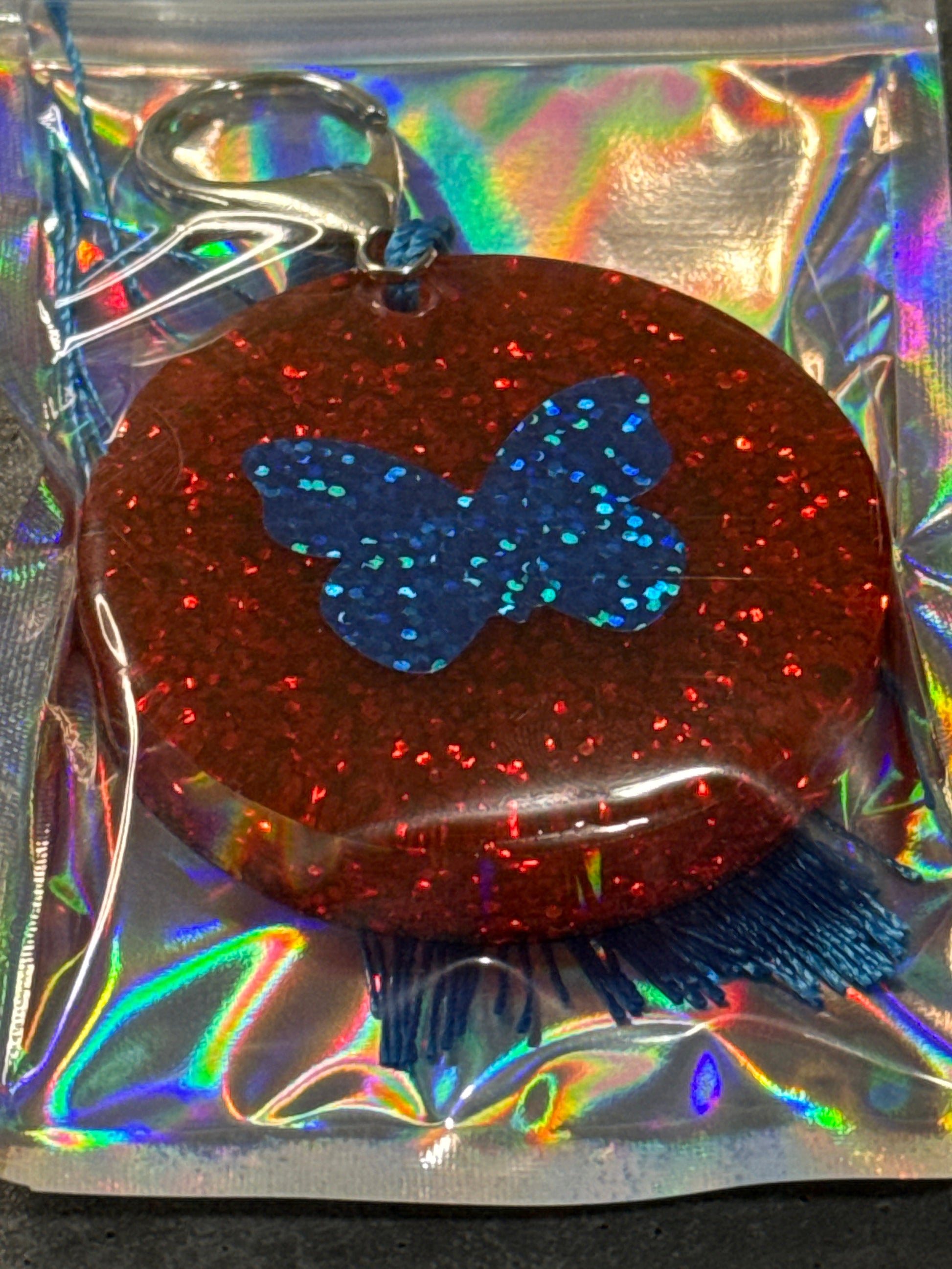 This Glitter Butterfly Keychain with Tassel is a functional and stylish accessory. Made of high-quality resin and adorned with eye-catching stickers, it adds a touch of cuteness to your everyday essentials. The glitter design adds a subtle sparkle, making it a must-have for any fashion-forward individual.