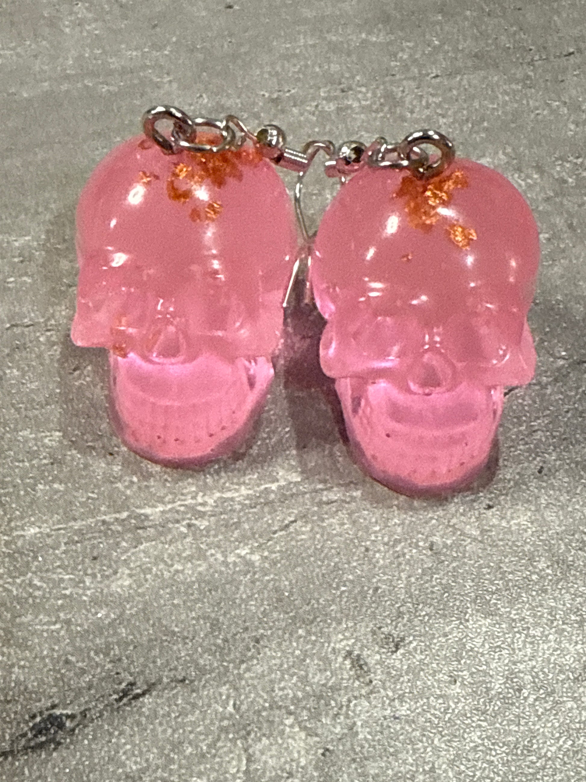 "Get ready to add some spooky sparkle to your wardrobe with our Glow-in-the-dark Skull Earrings. Made from high-quality resin, these earrings feature a glitter finish that will catch everyone's attention. Whether it's for Halloween or just to add some edge to your style, these earrings are the perfect accessory."