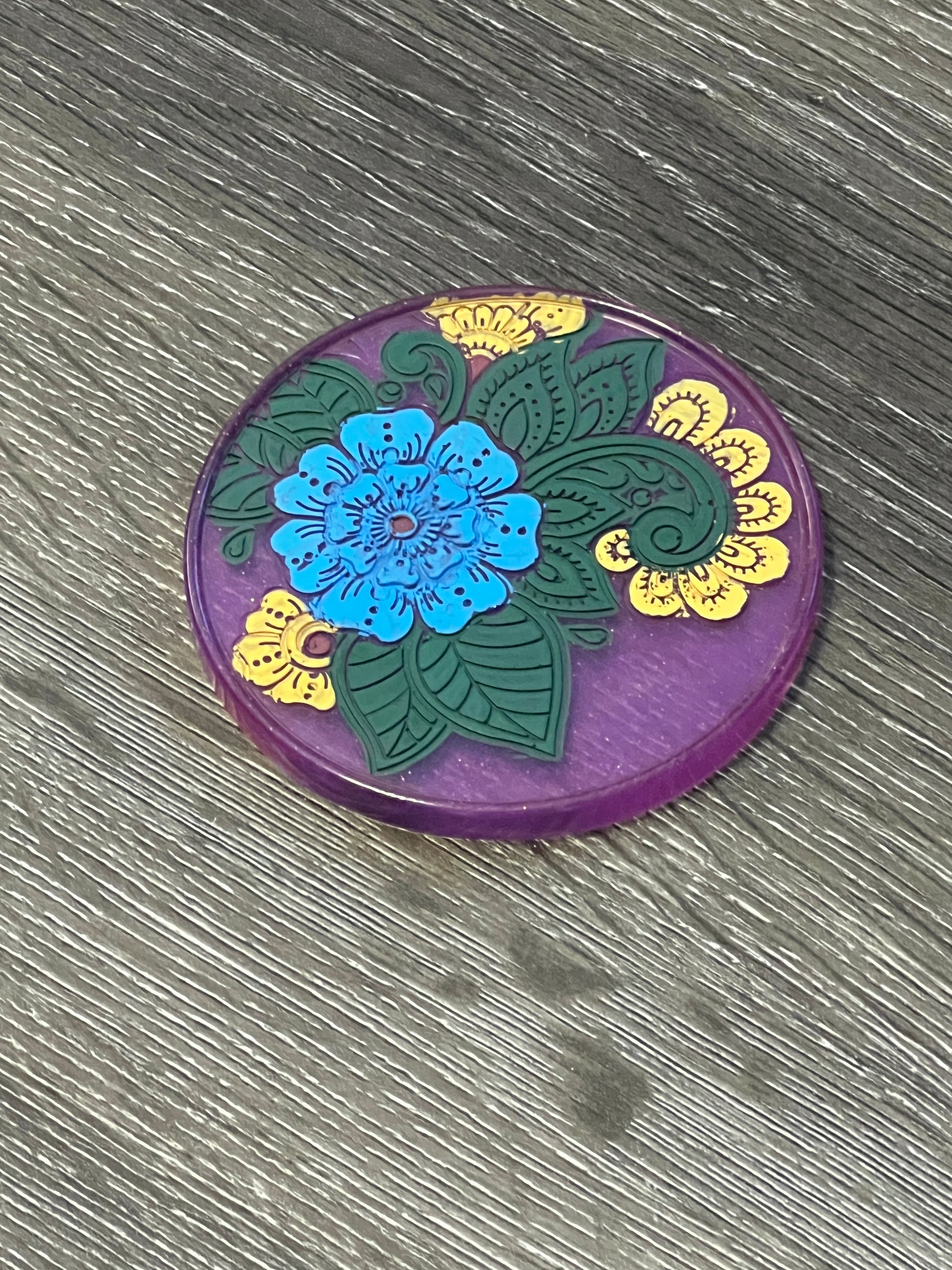 Crafted with resin and delicate acrylic paint, these hand-painted coasters bring a touch of nature to your home. The exquisite floral designs add a touch of charm to your decor. Protect your surfaces and elevate your space with these beautiful coasters.