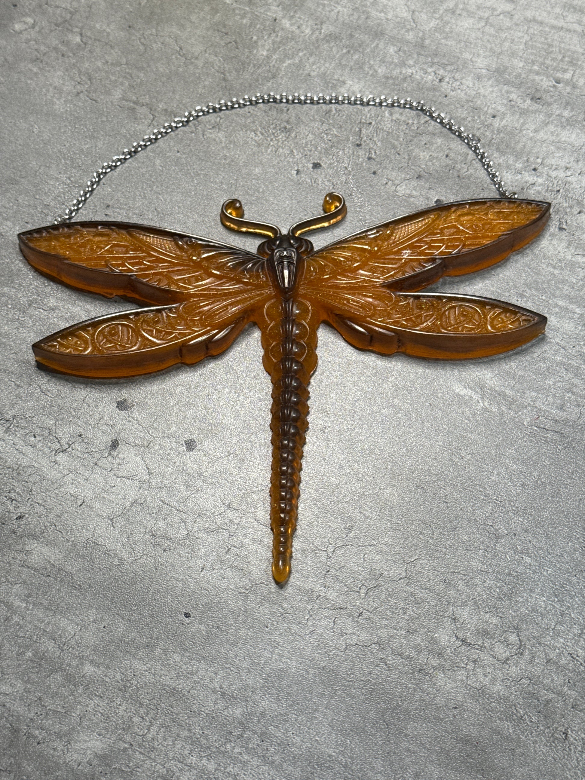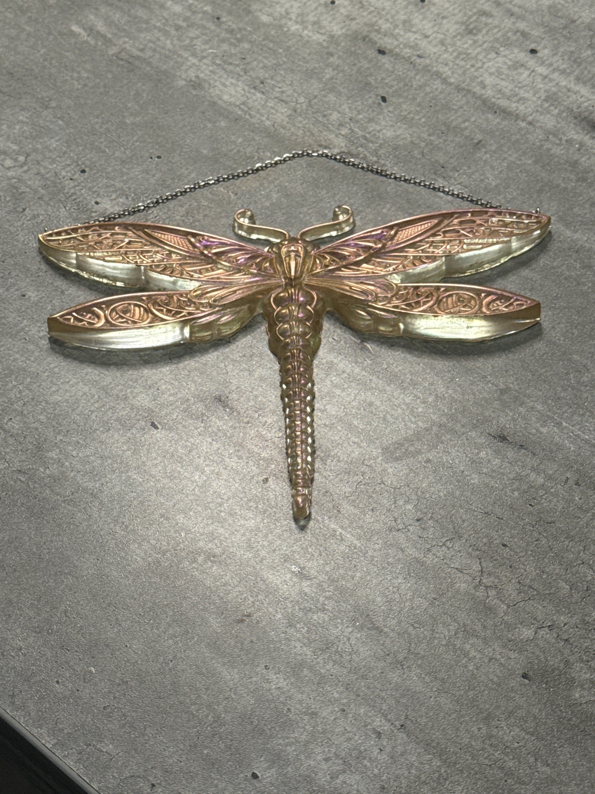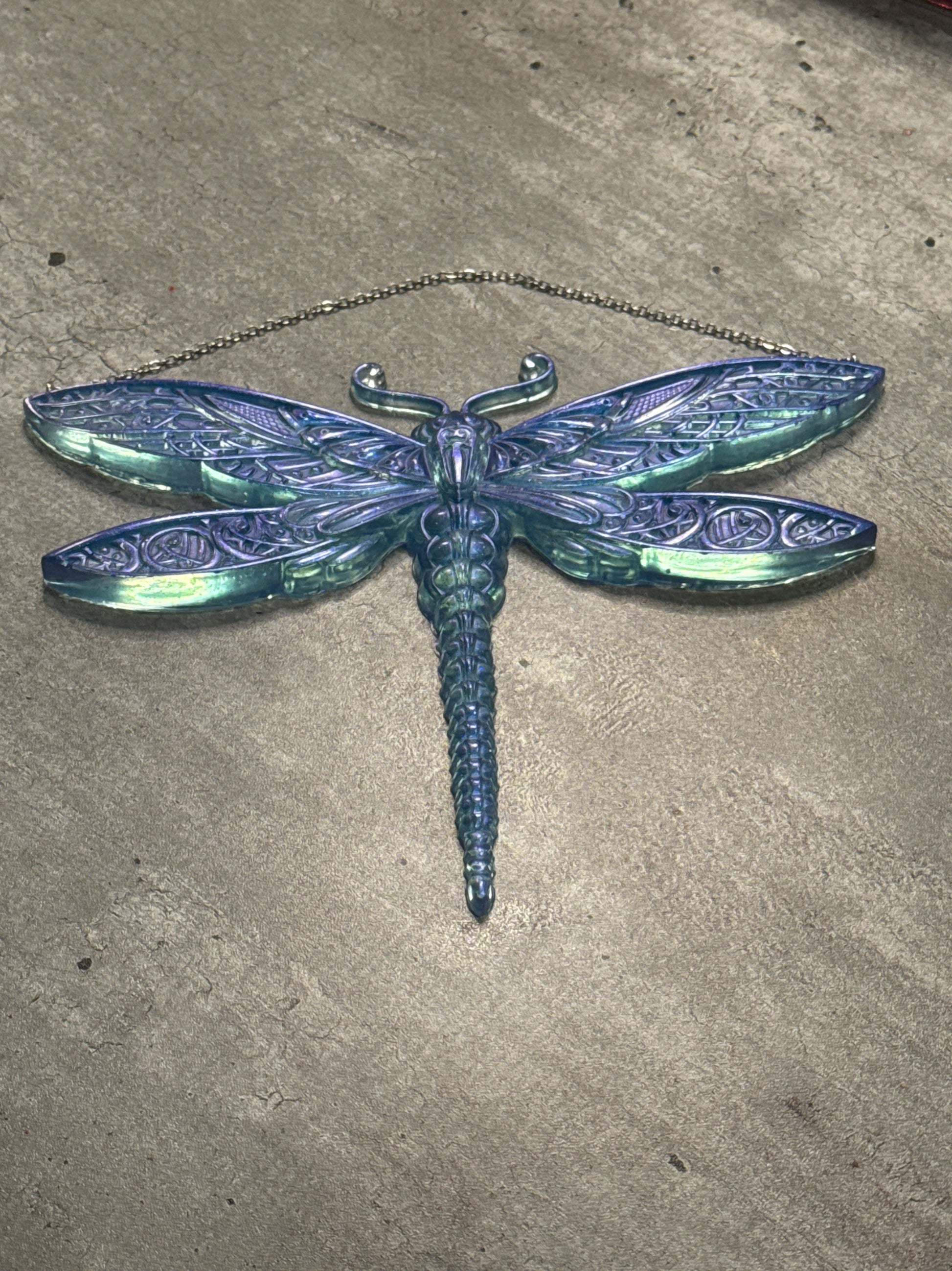 The Dragonfly figurine is expertly handcrafted with vibrant resin, showcasing its mystical beauty. The intricate details and vibrant colors make for a captivating addition to any room. With its striking design and quality material, this figurine is the perfect centerpiece for any collection. Comes with chain for hanging.
