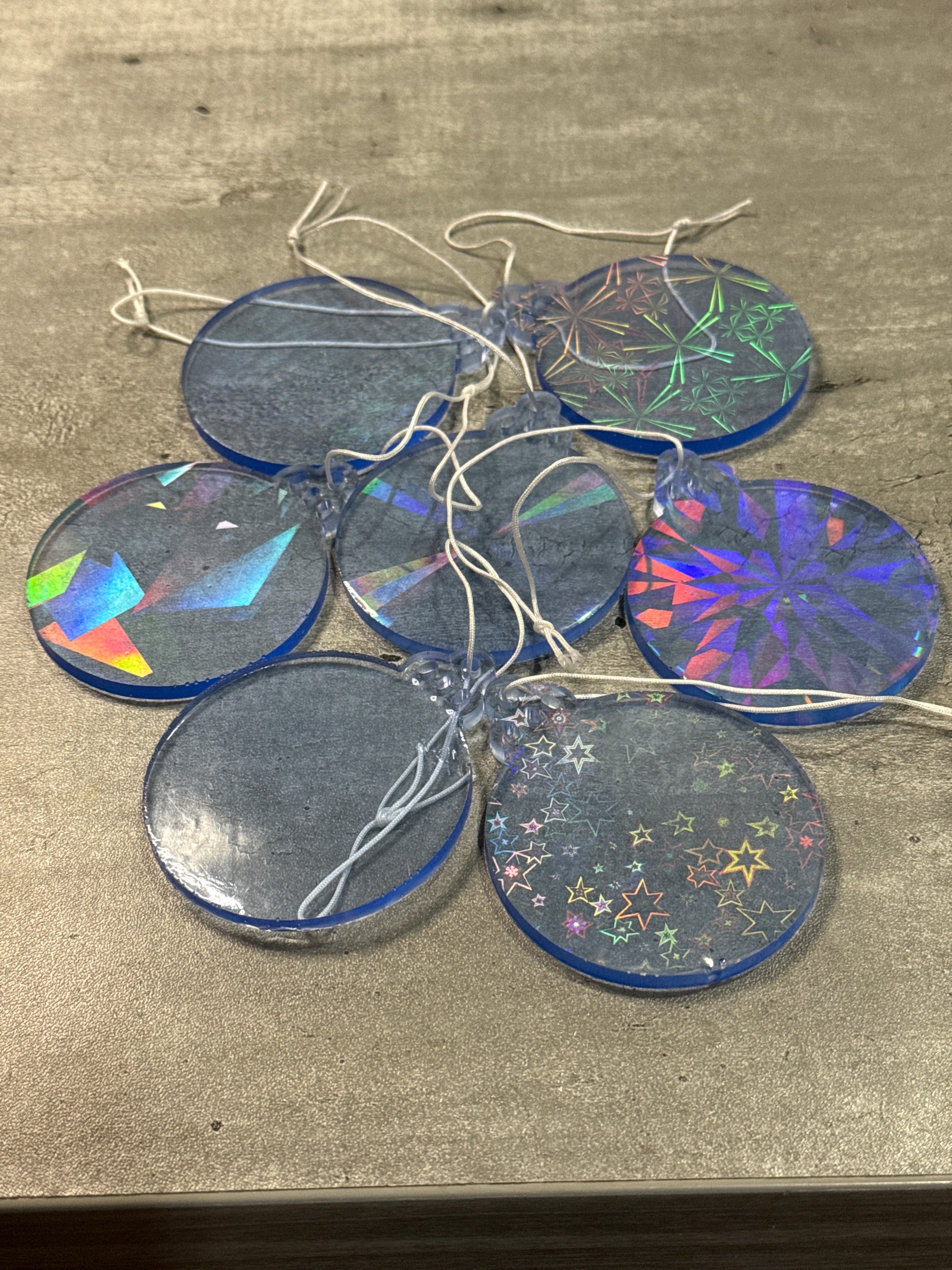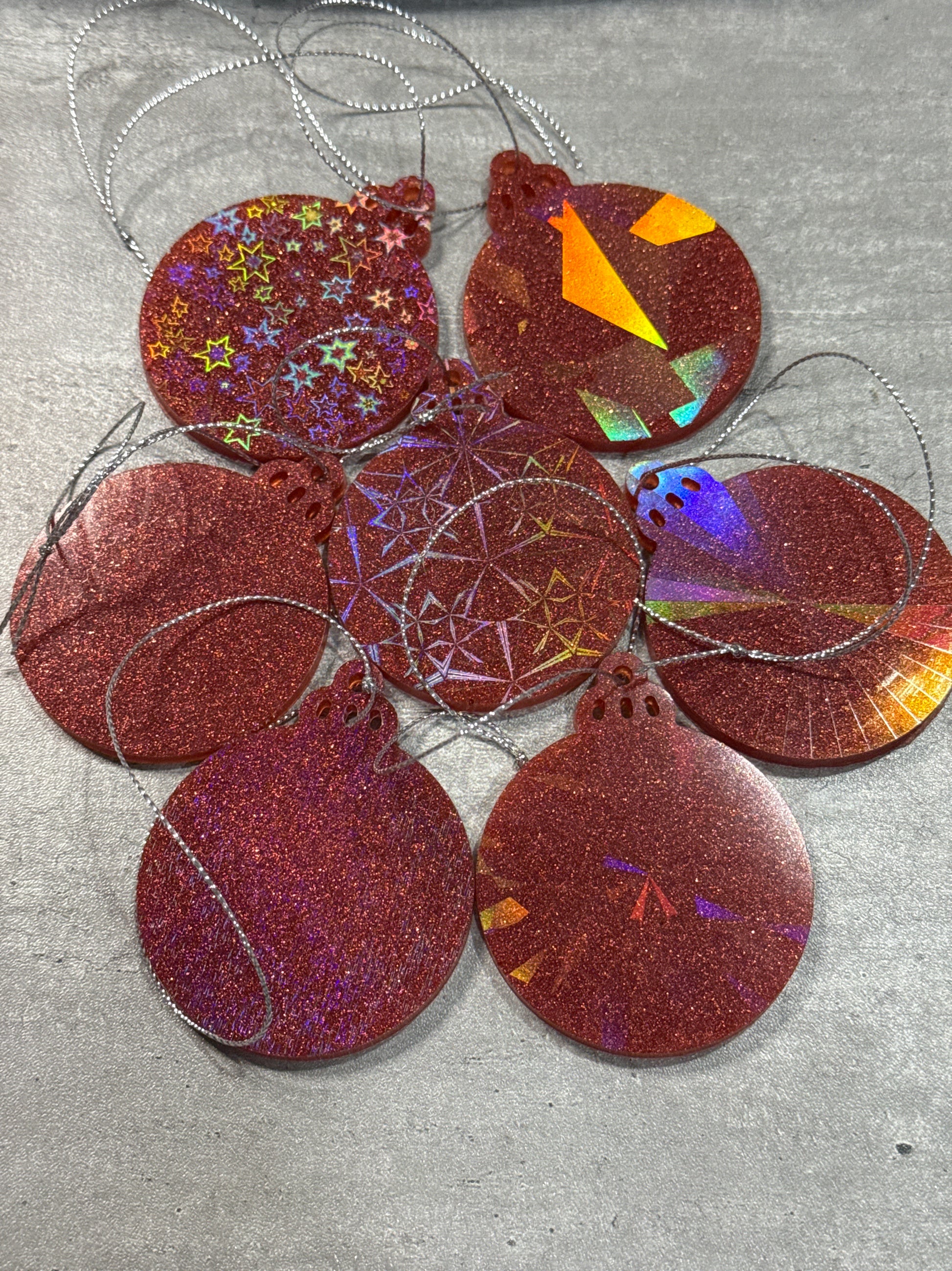 Add sparkle and shine to your holiday decor with these Holographic Christmas Ornaments. Made with high-quality resin and infused with mica powder and glitter, these ornaments are sure to catch the light and add a festive touch to your Christmas tree. Elevate your decorating game and make your tree truly stand out this season.