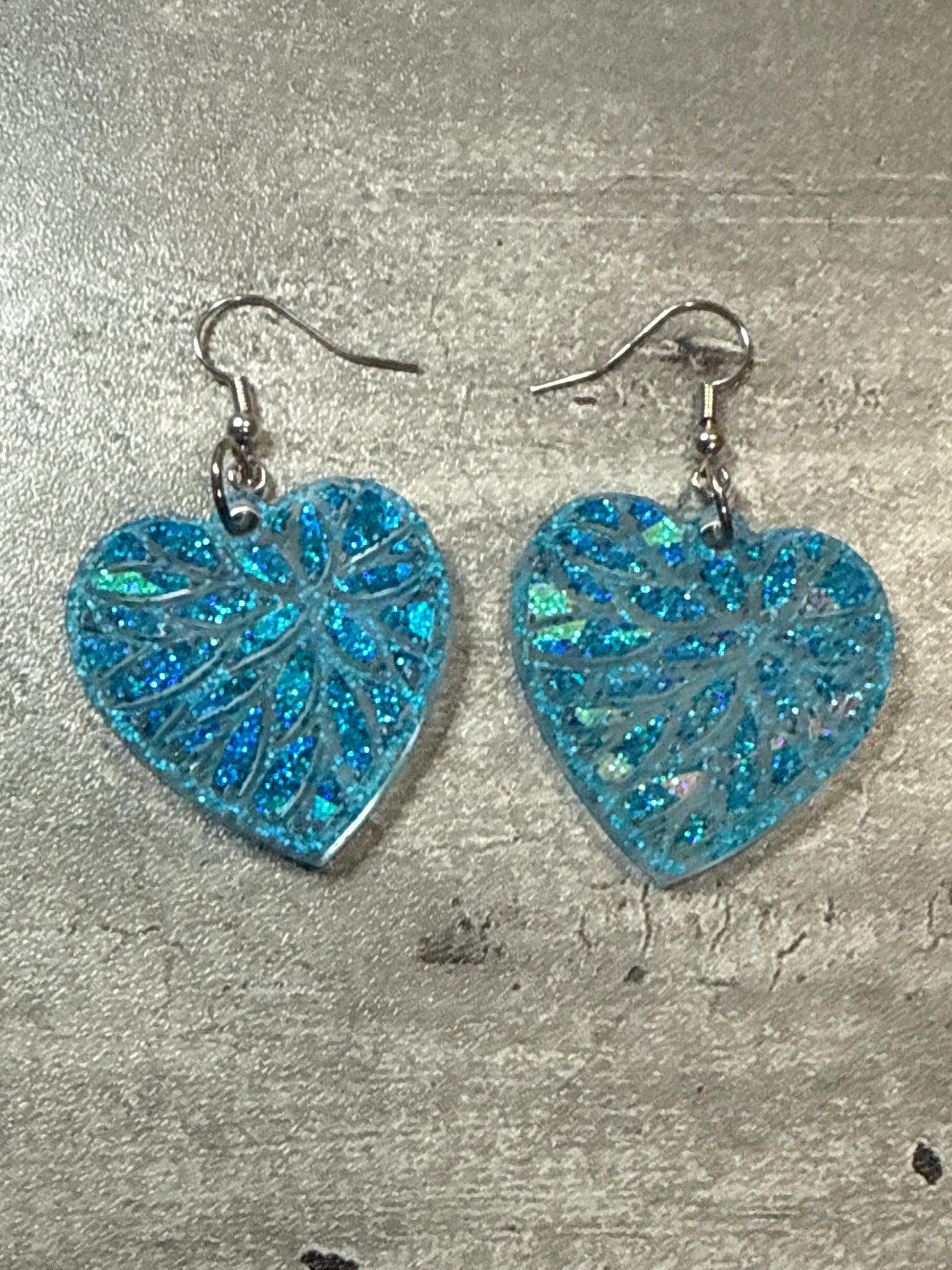 Stand out with these Holographic Heart Earrings. Made from resin, these earrings have a stunning holographic effect and are adorned with glitter. Perfect for adding a touch of love and sparkle to any outfit.