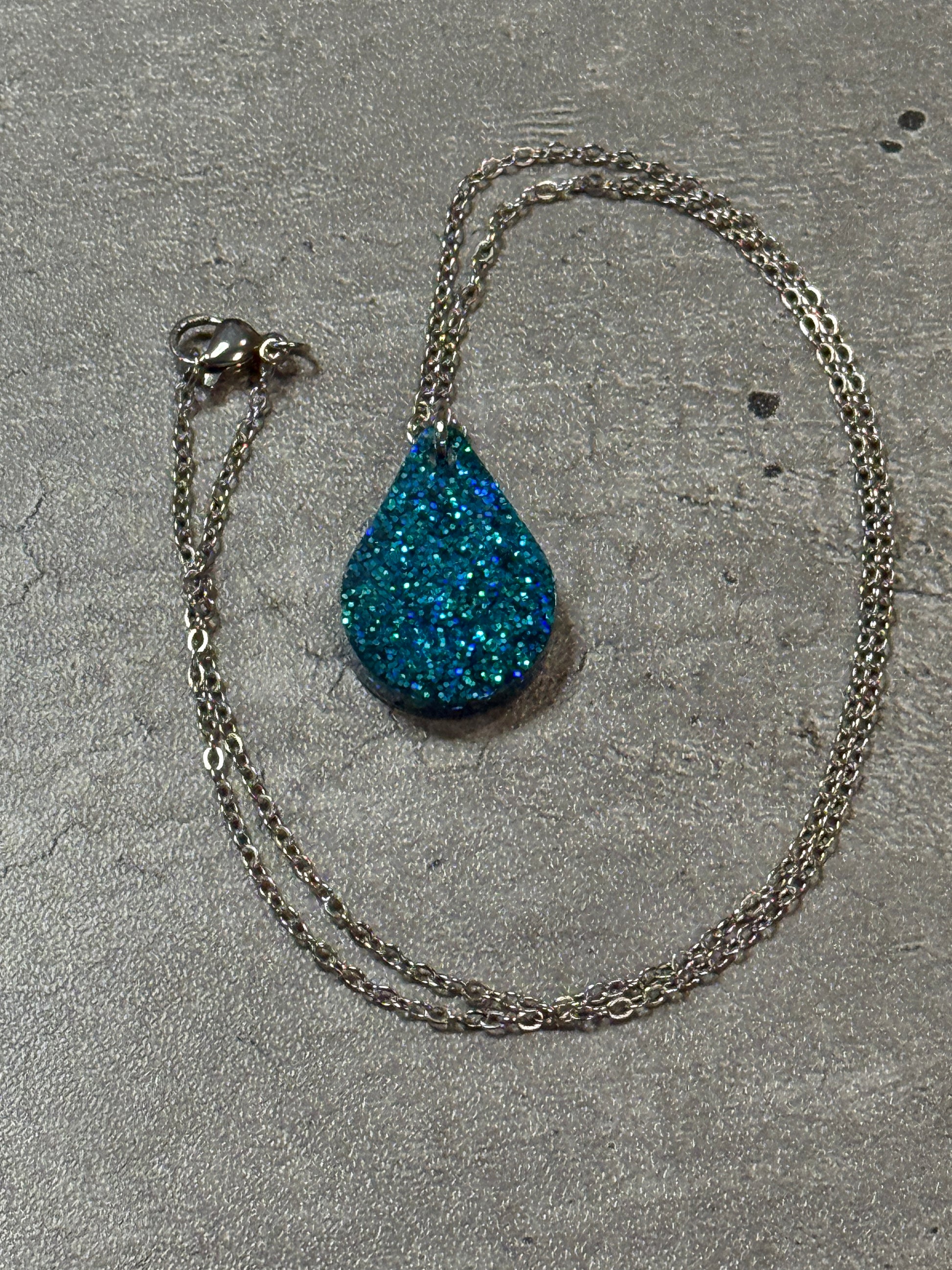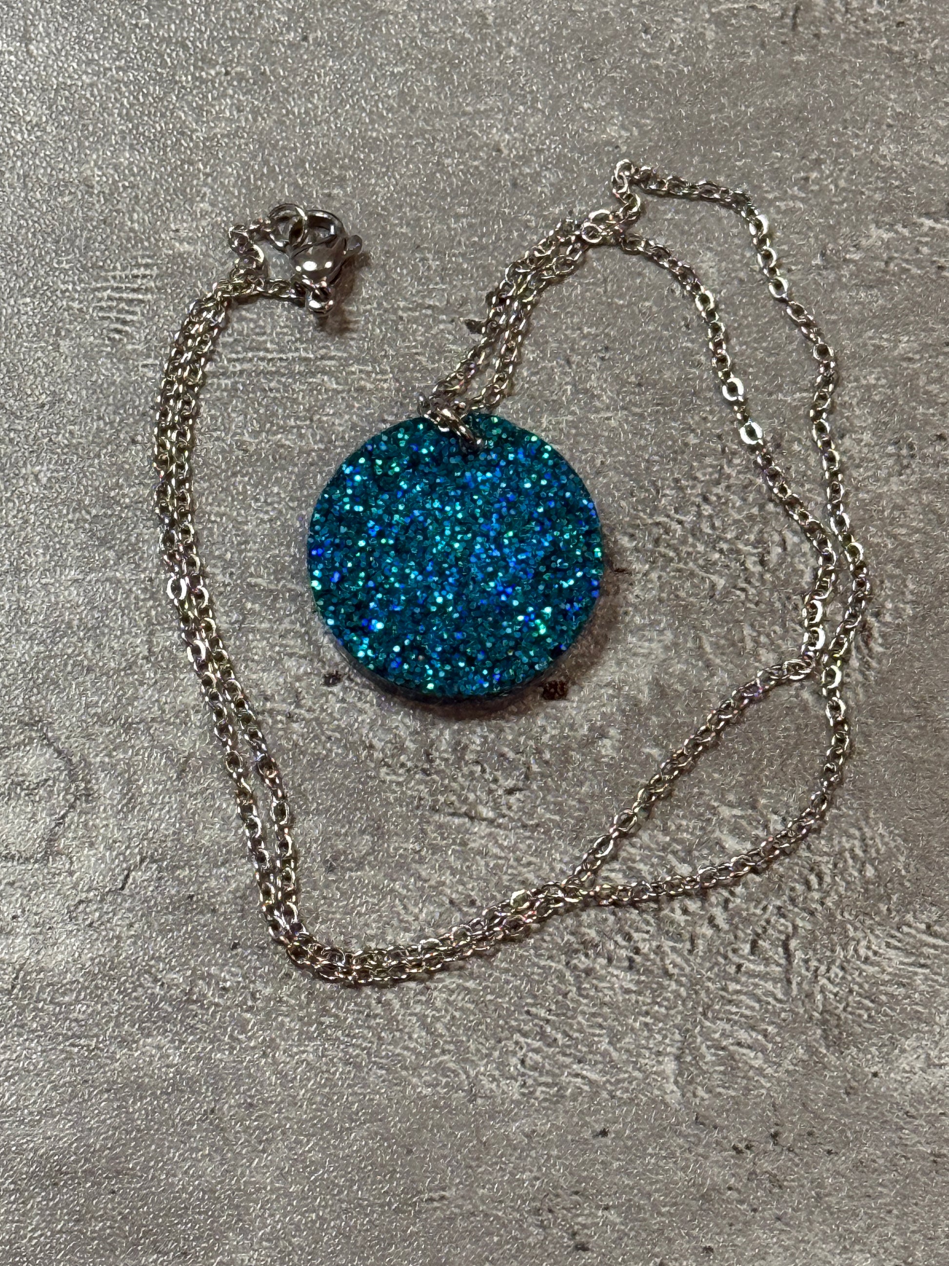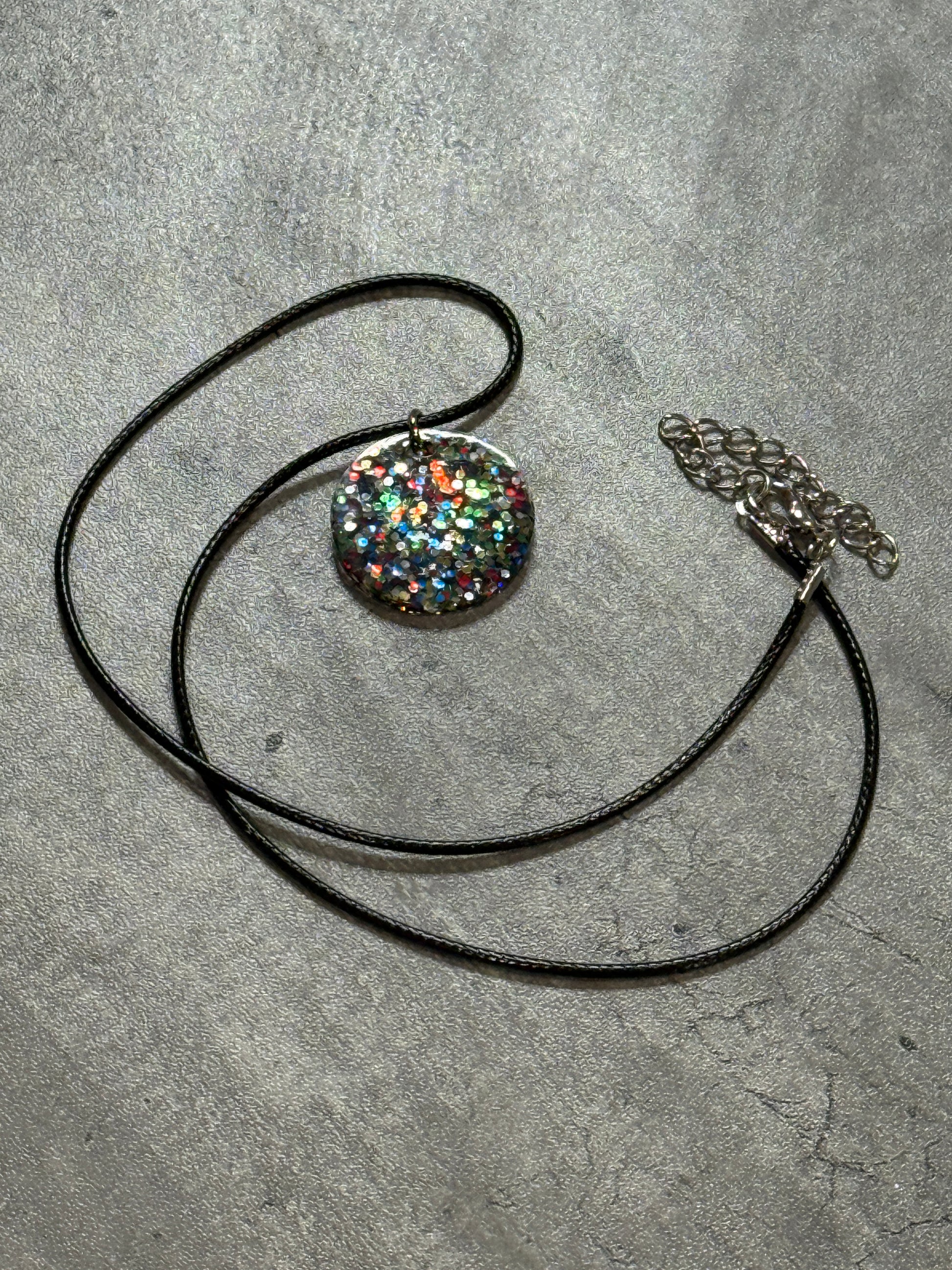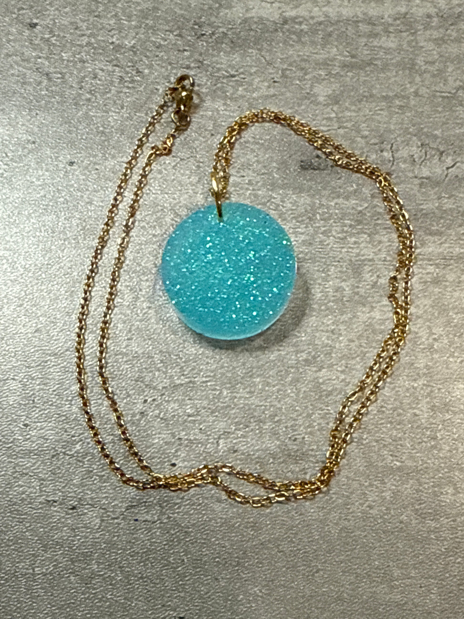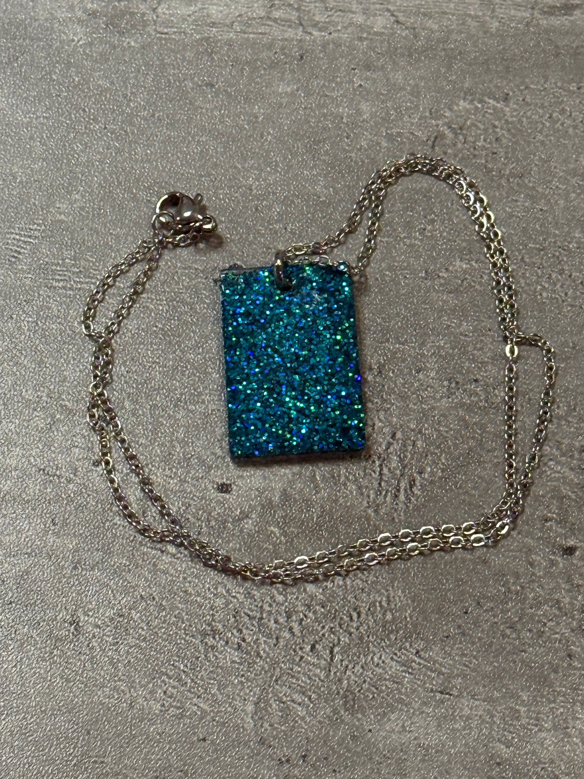Add a touch of glamour to any outfit with our Pendant Necklace. Made with high-quality resin, this necklace features a unique blend of glitter and sparkle that is sure to catch the eye. Perfect for any occasion, this necklace will make a statement and elevate your style.