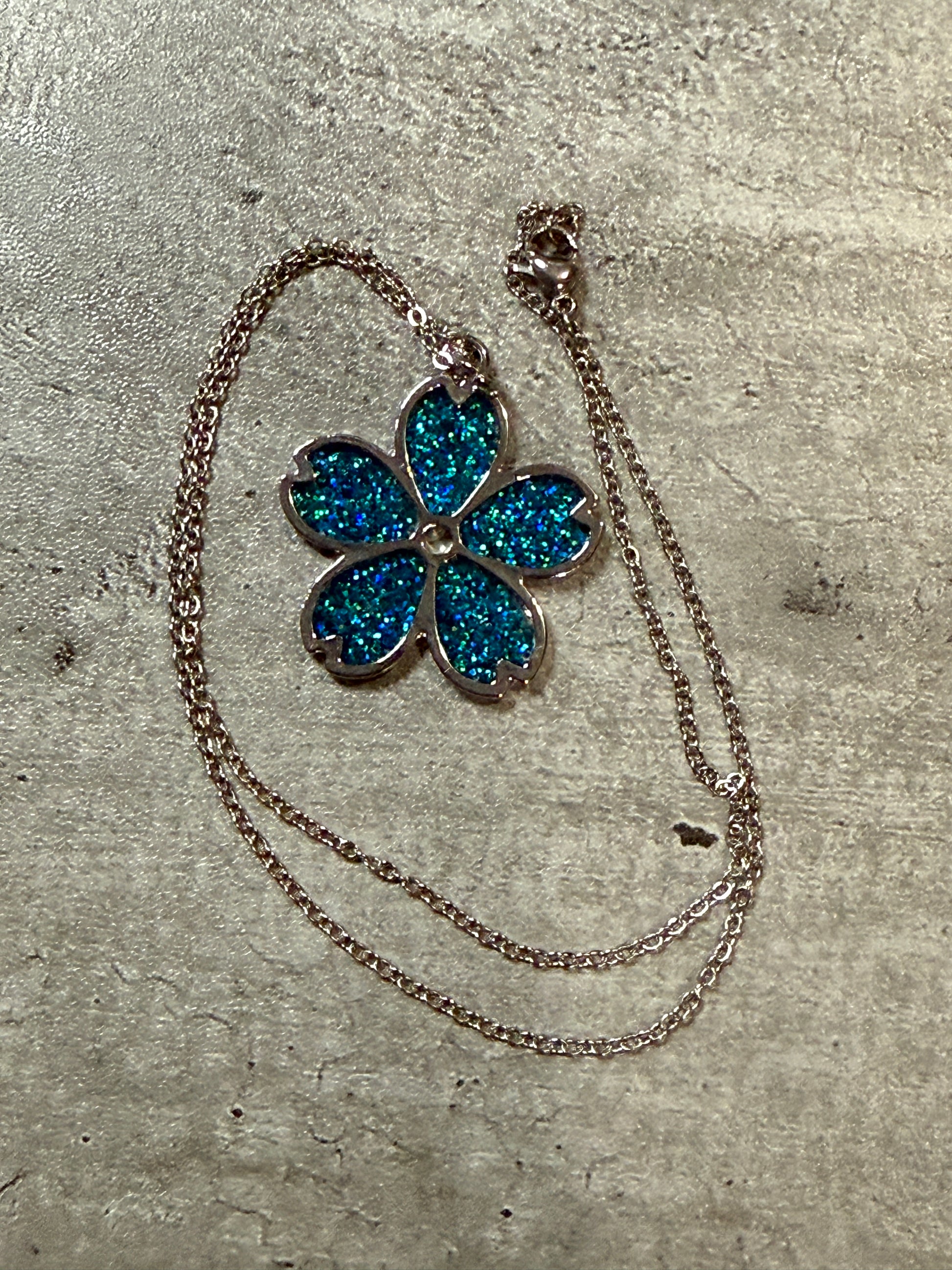 This Sakura Blossom Pendant Necklace features a stunning blend of UV resin, yellow glitter, silver, and sparkle, creating a unique and eye-catching piece of jewelry. The UV resin ensures long-lasting durability, while the delicate yellow and silver hues add a touch of elegance. The chain is silvery. The subtle sparkle adds a touch of glamour to any outfit.