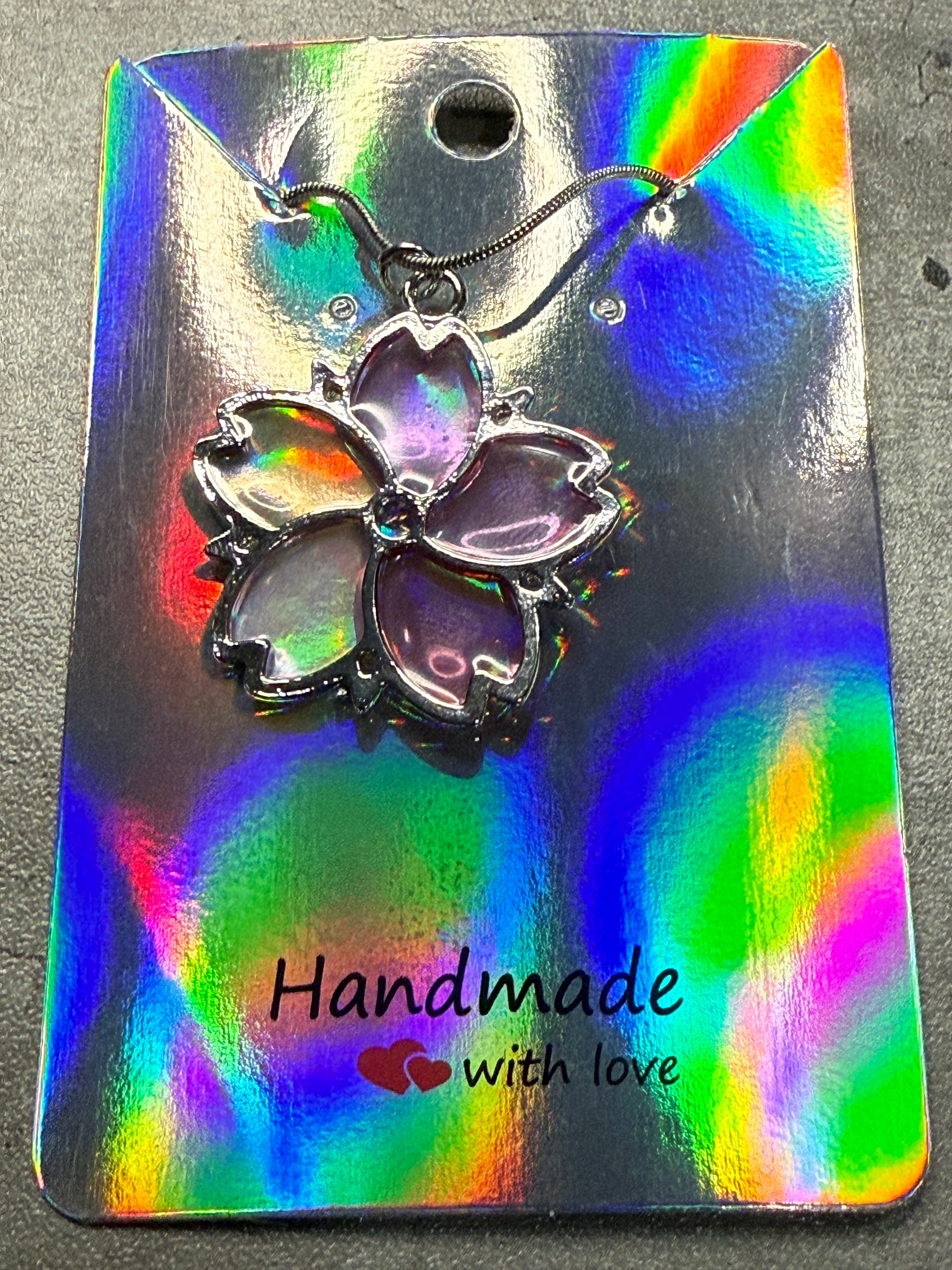This Sakura Blossom Pendant Necklace features a stunning blend of UV resin, pinks, silver, and sparkle, creating a unique and eye-catching piece of jewelry. The UV resin ensures long-lasting durability, while the delicate pink and silver hues add a touch of elegance. The chain is 925 silver plated rope. The subtle sparkle adds a touch of glamour to any outfit.