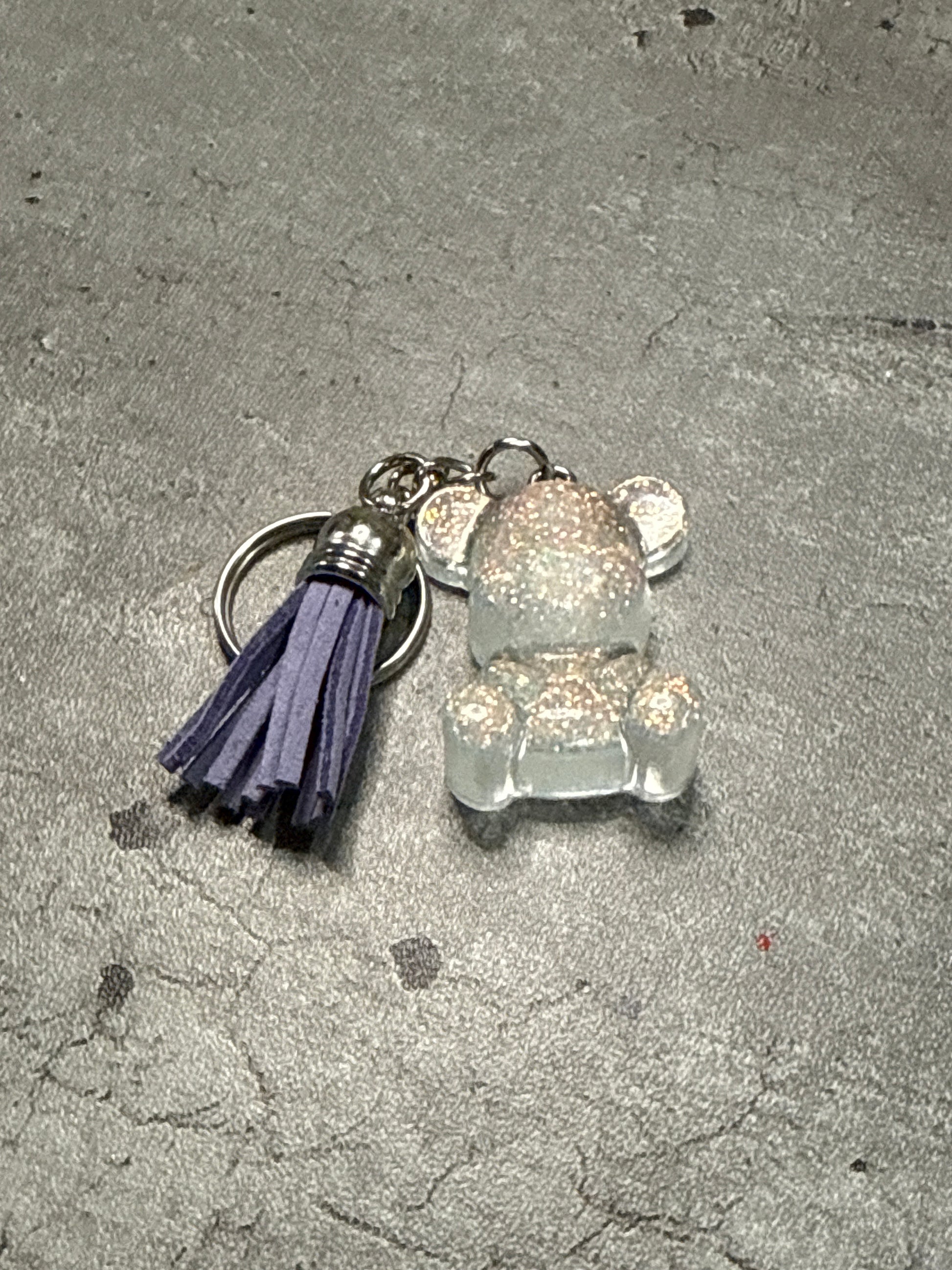 Add a touch of sparkle to your keys with the Glitter Bear Keychain. Made with durable resin and glitter, this keychain is both fun and functional. Keep track of your keys while adding a touch of personality to your everyday carry.