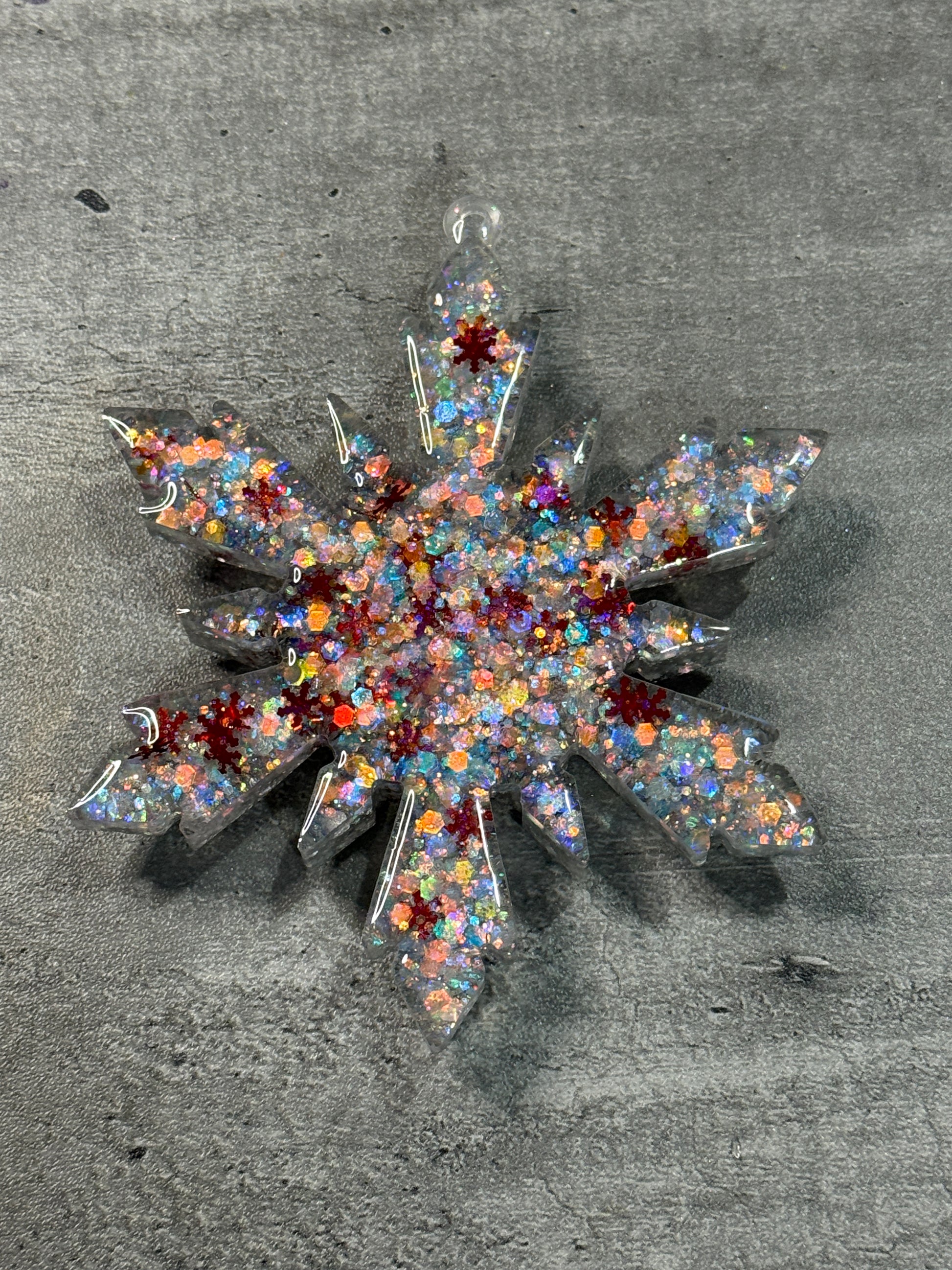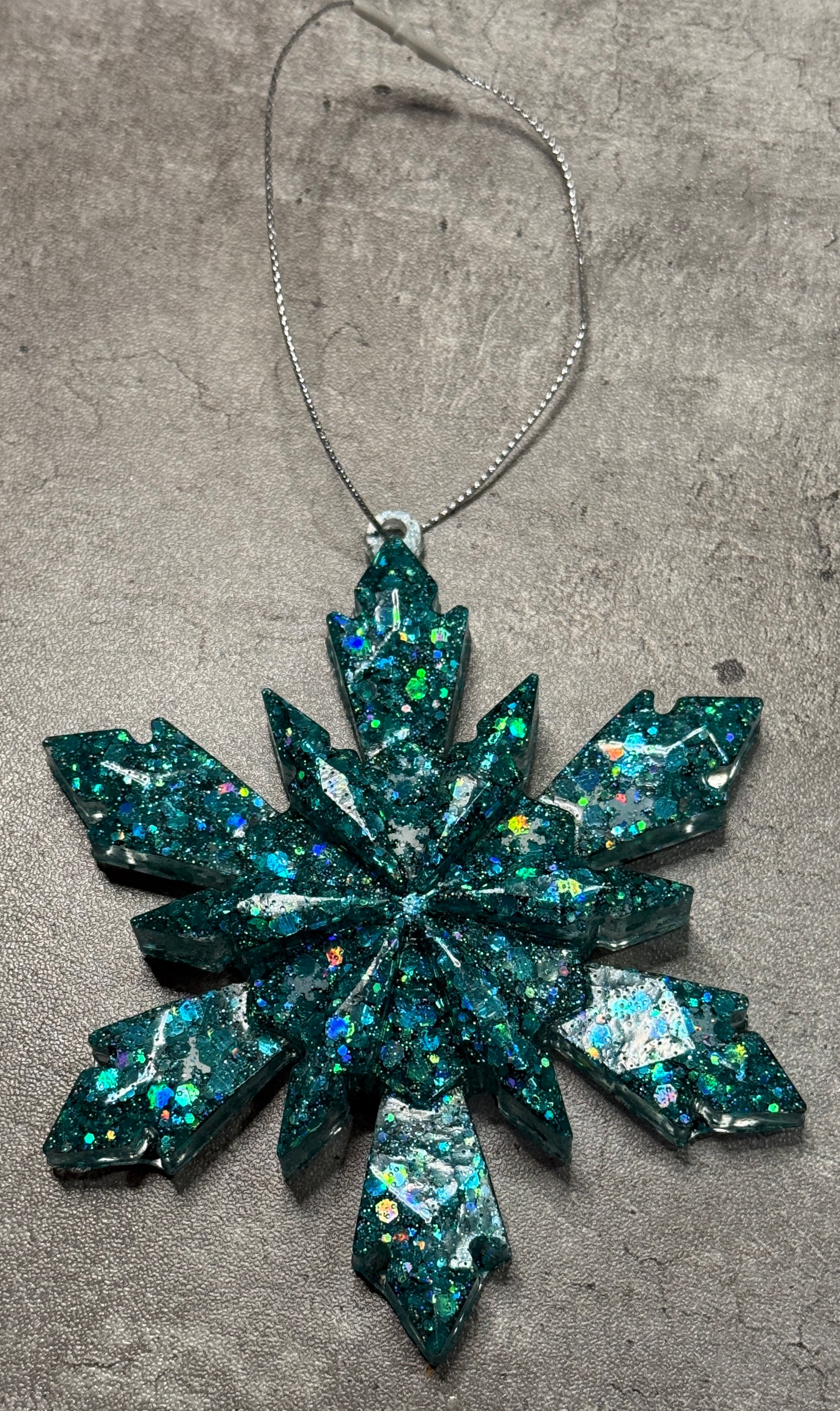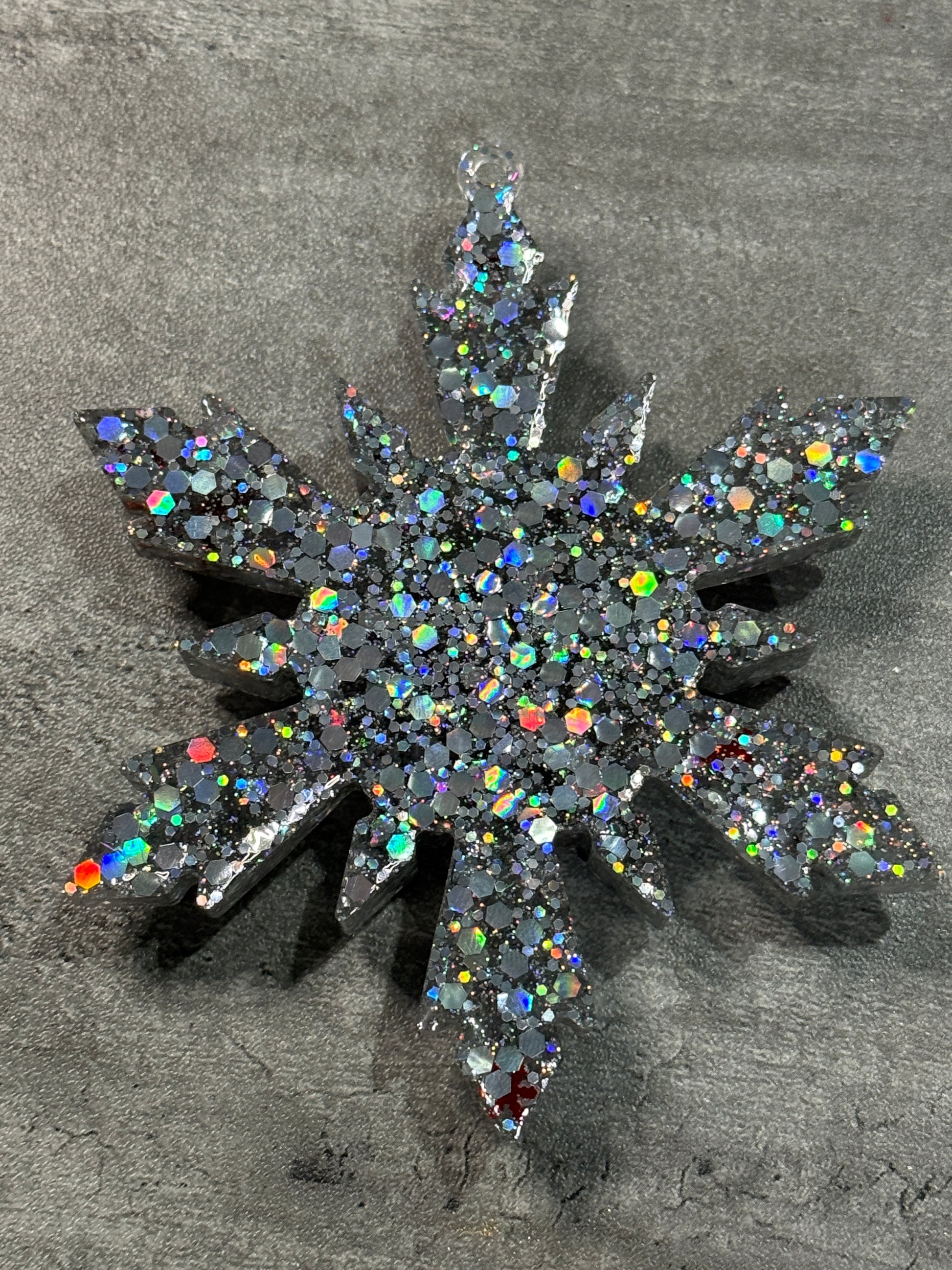 Crafted from durable resin and adorned with sparkling glitter, our large Snowflake Christmas Ornament adds a touch of holiday charm to any tree. This is the perfect addition to your festive décor.