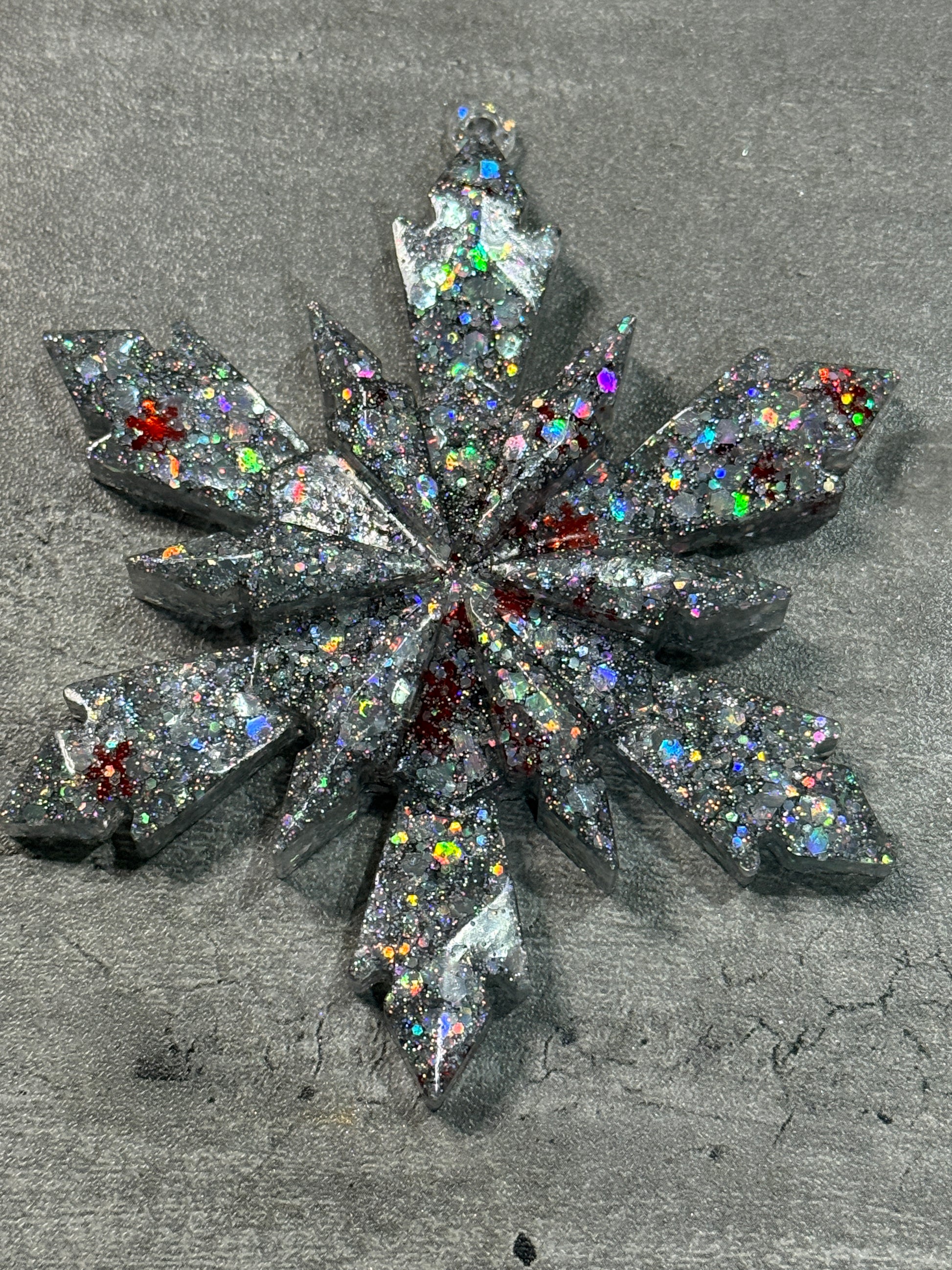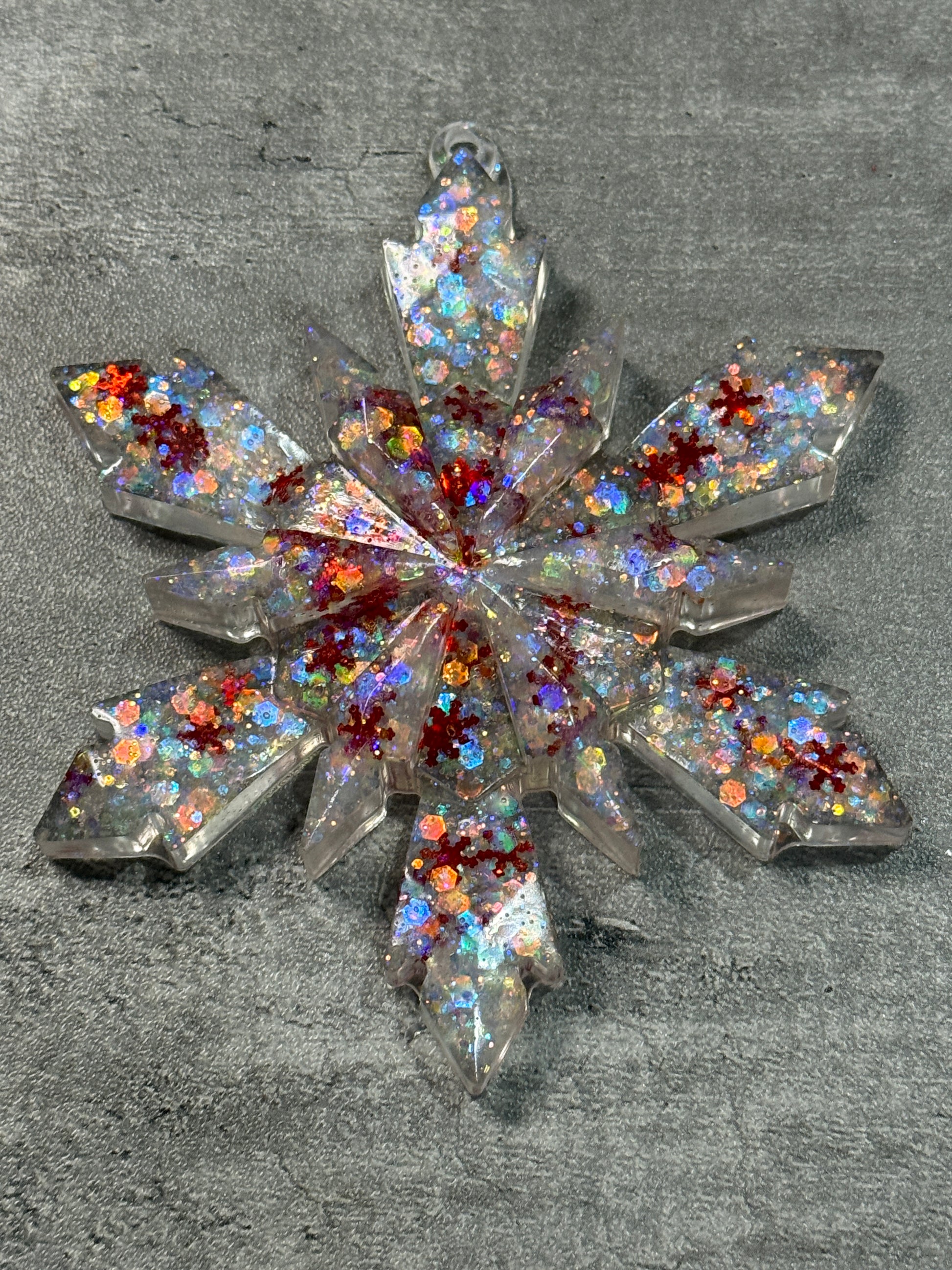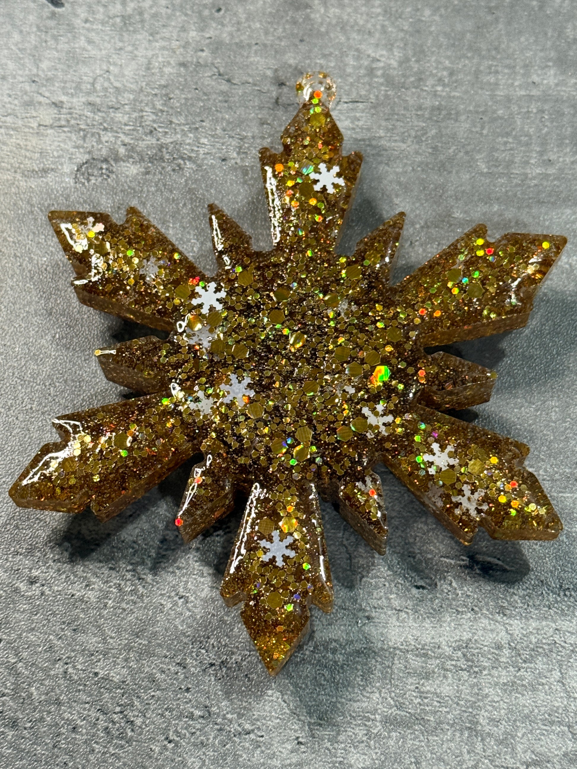 Crafted from durable resin and adorned with sparkling glitter, our large Snowflake Christmas Ornament adds a touch of holiday charm to any tree. This is the perfect addition to your festive décor.
